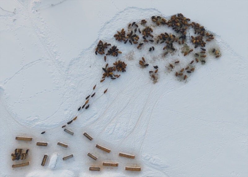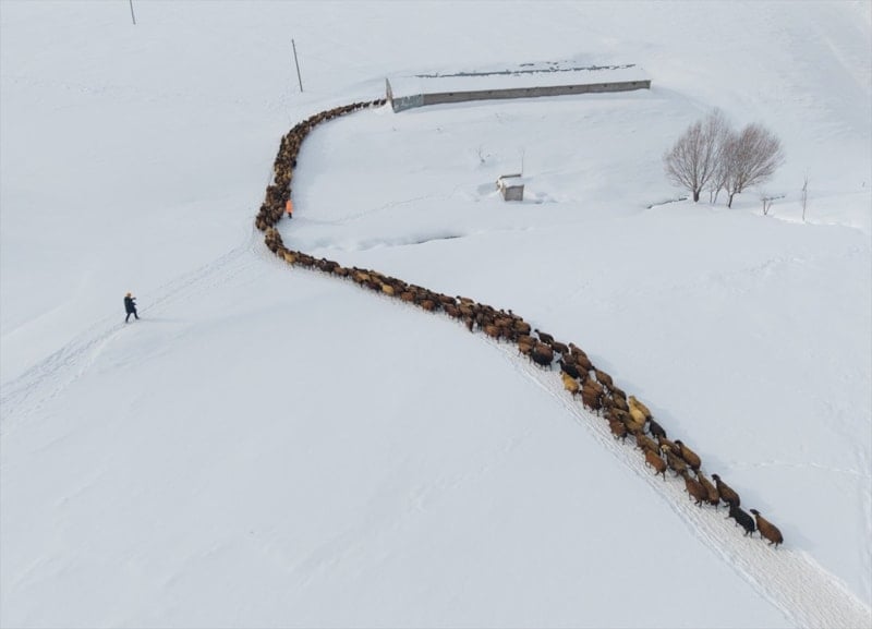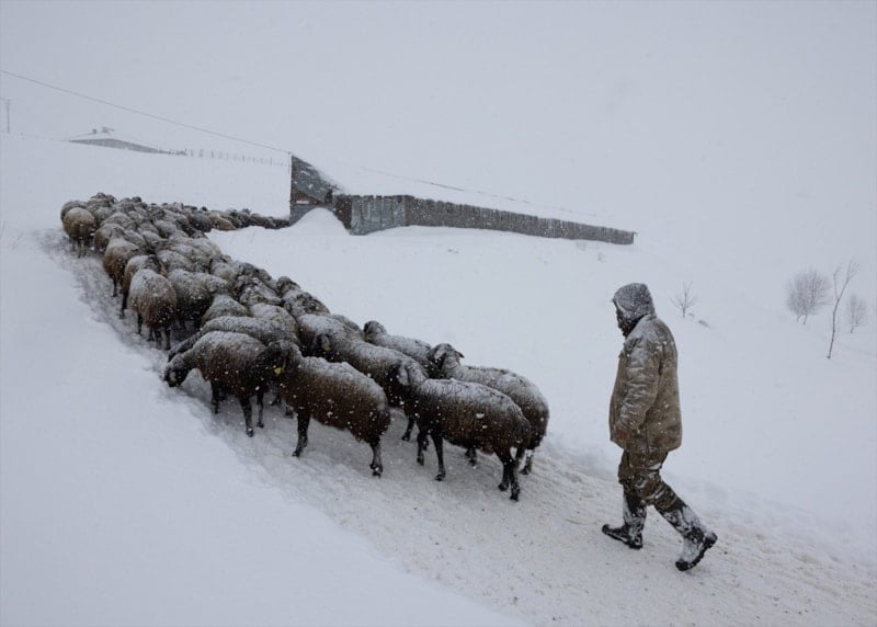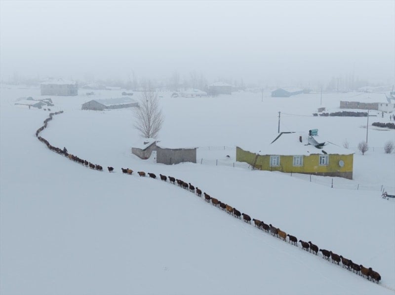 Yılın büyük bölümünü yaylak ve kışlak arasında geçiren besiciler, düşük hava sıcaklıklarına rağmen hayvanlarının bakım ve beslenmesini sürdürerek zorlu kış şartlarıyla mücadele ediyor.
