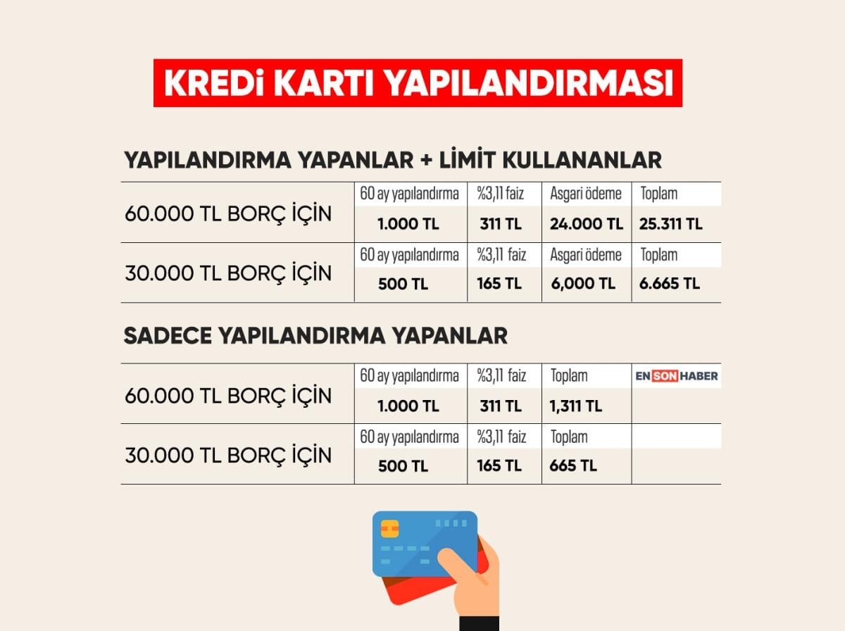 Bireysel kredi kartlarında dönem borcunun asgari tutarını ödeyemeyenler, mevcut kredi kartı borç bakiyelerini 60 aya kadar yapılandırabilecek.