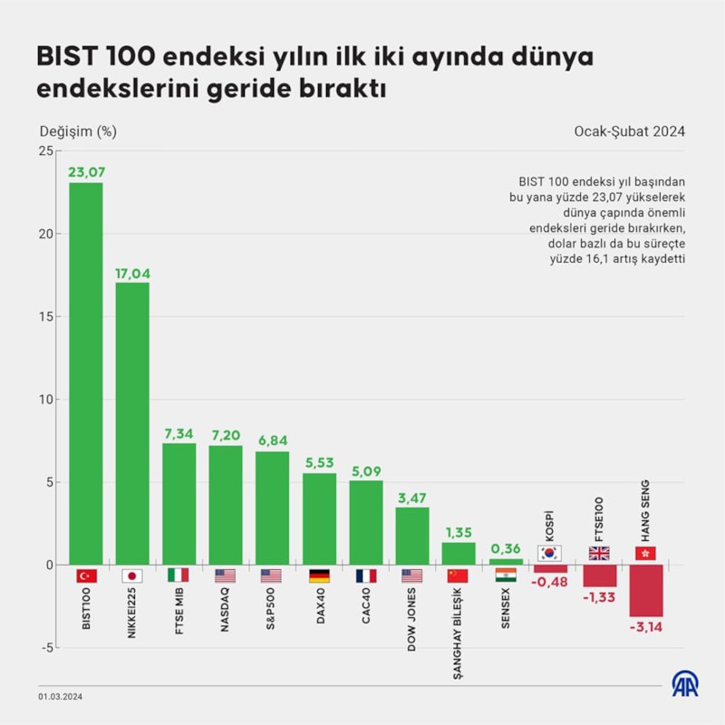 2024'ün ilk iki ayında Borsa İstanbul'da yaşanan yükseliş, dünyadaki diğer borsaların üzerinde gerçekleşti.
