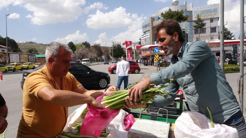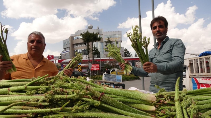 Bitlis’in Güroymak ilçesinin yüksek kesimlerinde yetişen ve yayla muzu olarak da bilinen uçkun bitkisi tezgahlarda satılmaya başlandı.