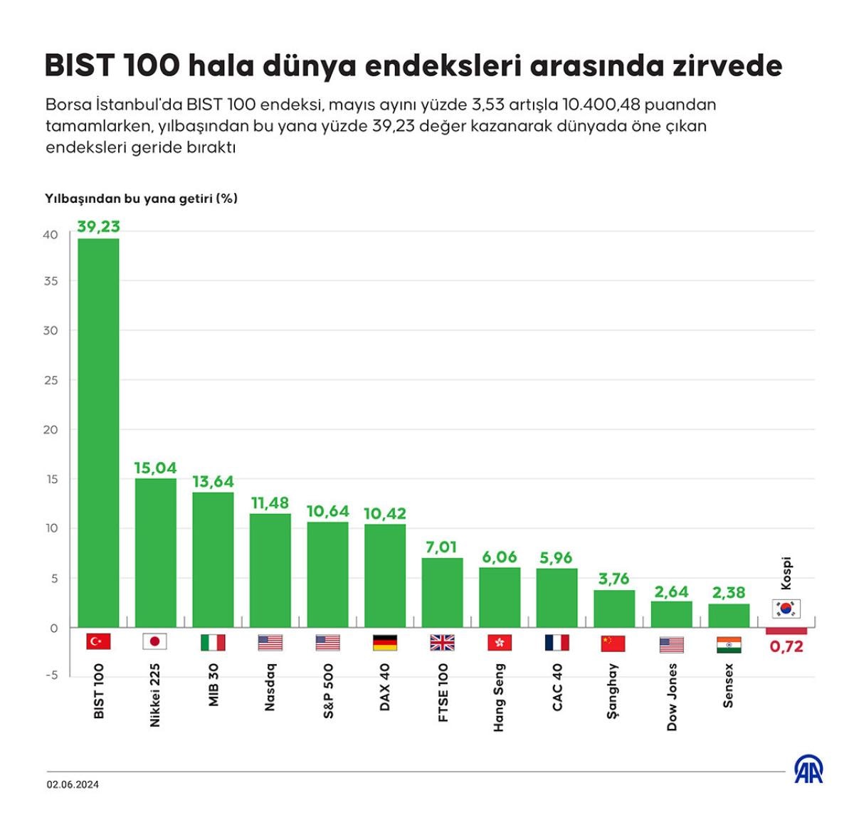 Yılbaşından bu yana ABD'de New York Borsası'nda Nasdaq endeksi yüzde 11,48, S&P 500 endeksi yüzde 10,64, Dow Jones ise yüzde 2,64 yükselirken, Avrupa tarafında Almanya'da DAX 40 endeksi yüzde 10,42, İngiltere'de FTSE 100 endeksi yüzde 7,01, Fransa'da CAC 40 endeksi yüzde 5,96, İtalya'da MIB 30 endeksi yüzde 13,64 artış kaydetti.