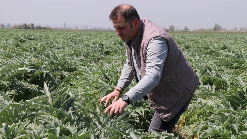Bursa'nın Mustafakemalpaşa ilçesinde babasından kalan araziyle başladığı enginar üretimini büyüten devlet memuru Ali Rıza Alan, ülkenin dört bir yanına ürün gönderiyor.
