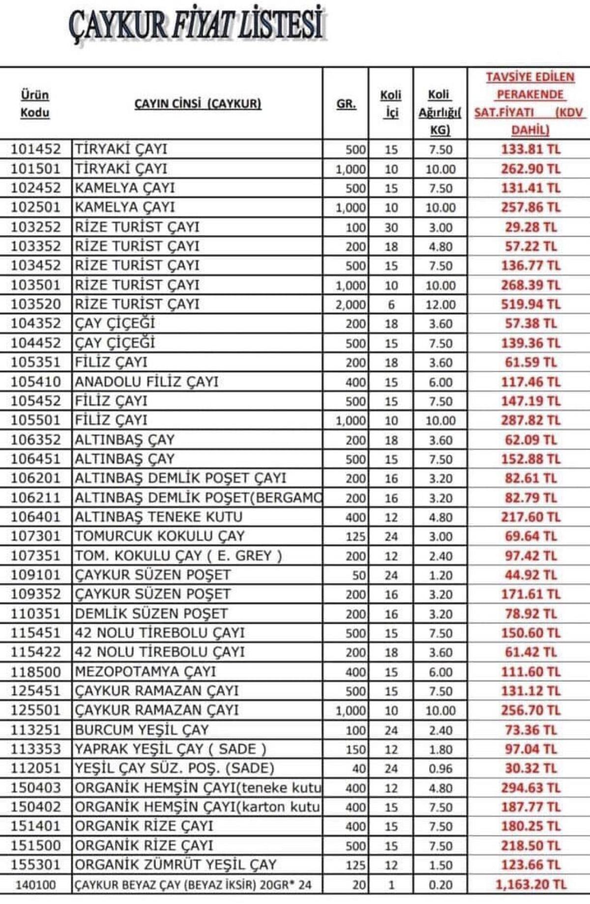 Tekel Bayileri Yardımlaşma Derneği (TBYD) Başkanı, çaya gelen zam kararının ardından oluşan yeni fiyat listesini paylaştı.