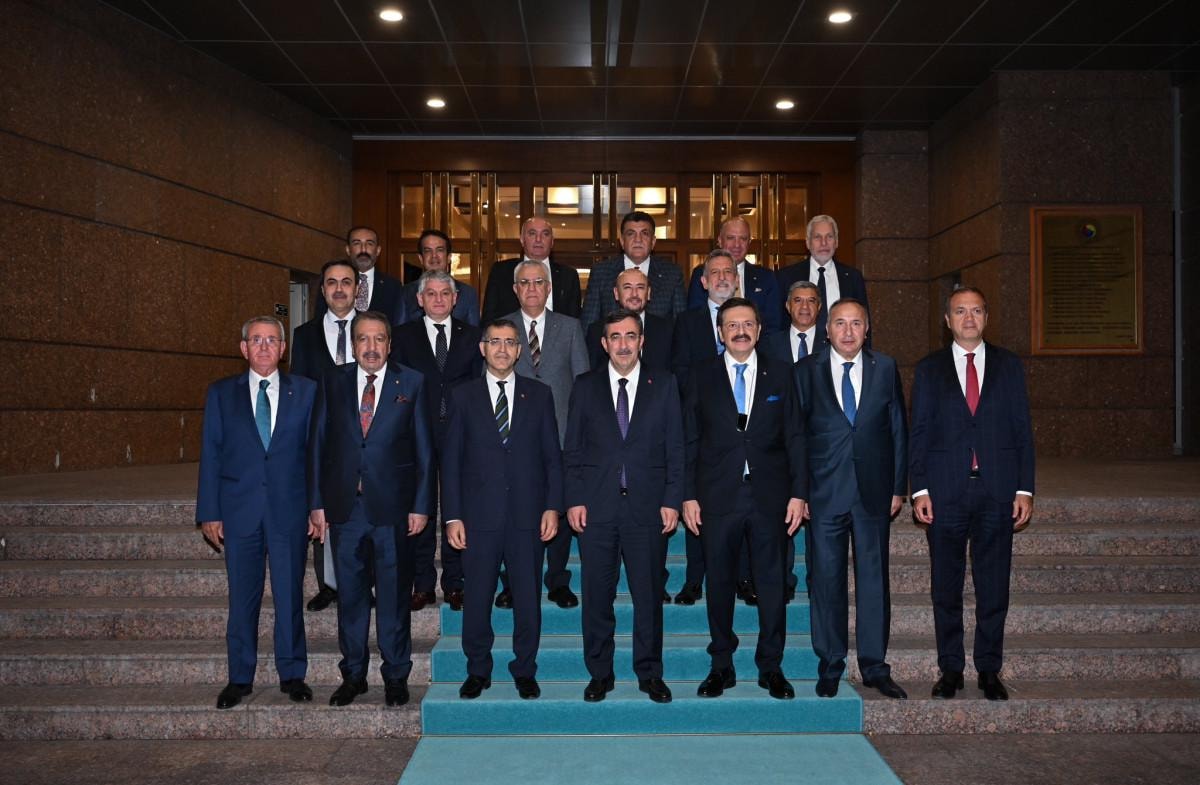 Cumhurbaşkanı Yardımcısı Cevdet Yılmaz, Türkiye Odalar ve Borsalar Birliği (TOBB) Başkanı Rifat Hisarcıklıoğlu ve TOBB Yönetim Kurulu Üyeleri ile bir araya gelerek, Orta Vadeli Program'ın (OVP) güncellenmesi ve reel sektörü ilgilendiren konularda görüştü.