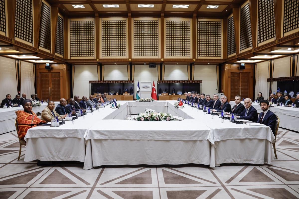 Cumhurbaşkanı Yardımcısı Cevdet Yılmaz, "Türk yatırımları 10 milyar dolar seviyesinde. Hedefimiz Afrika ile ticareti 50 milyar dolara çıkartmayı düşünüyoruz. çifte vergilendirmenin önlenmesi anlaşmasını neticelendiriyoruz. Türkiye'de burslu öğrenim gören Lesotho öğrencilerin sayısı artacak." dedi.