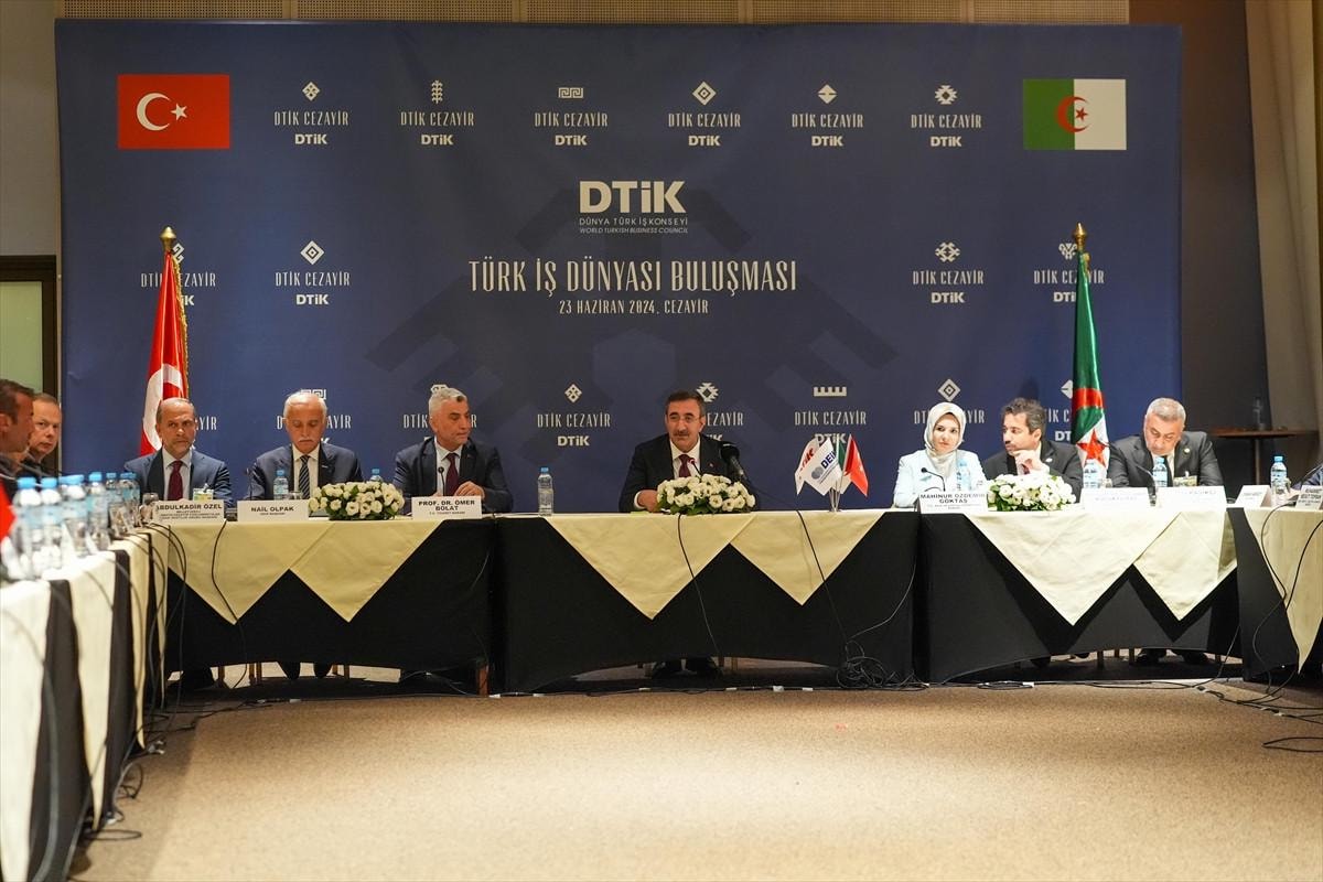 Cumhurbaşkanı Yardımcısı Cevdet Yılmaz, Cezayir ziyareti kapsamında, Aile ve Sosyal Hizmetler Bakanı Mahinur Özdemir Göktaş ve Ticaret Bakanı Ömer Bolat ile birlikte, Dünya Türk İş Konseyi (DTİK) tarafından düzenlenen Türk İş Dünyası Buluşması programına katıldı.