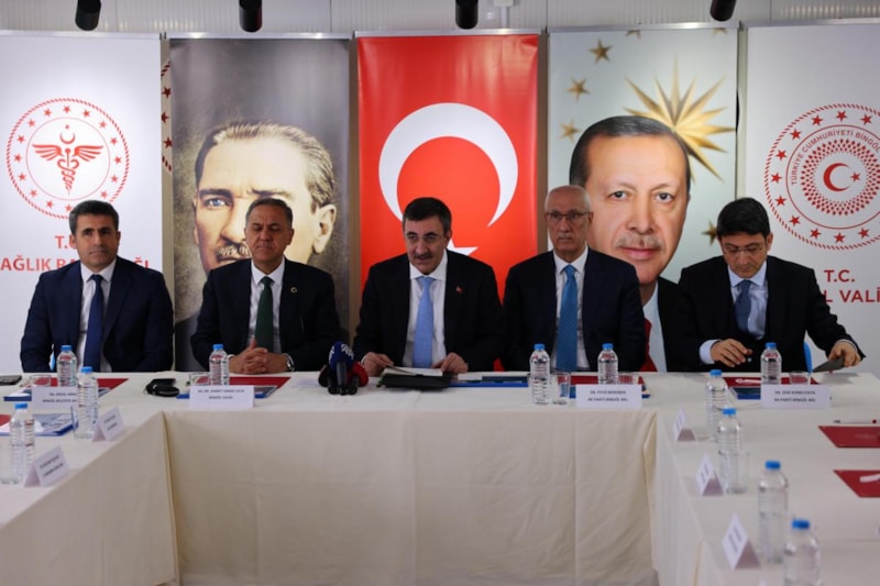 Cumhurbaşkanı Yardımcısı Cevdet Yılmaz, bir dizi ziyaret için geldiği Bingöl'de, Muş kara yolu üzerindeki Ulusal Medikal Kurtarma Ekibi Birimi (UMKE) Operasyon ve Lojistik Merkezi'ni ziyaret etti.