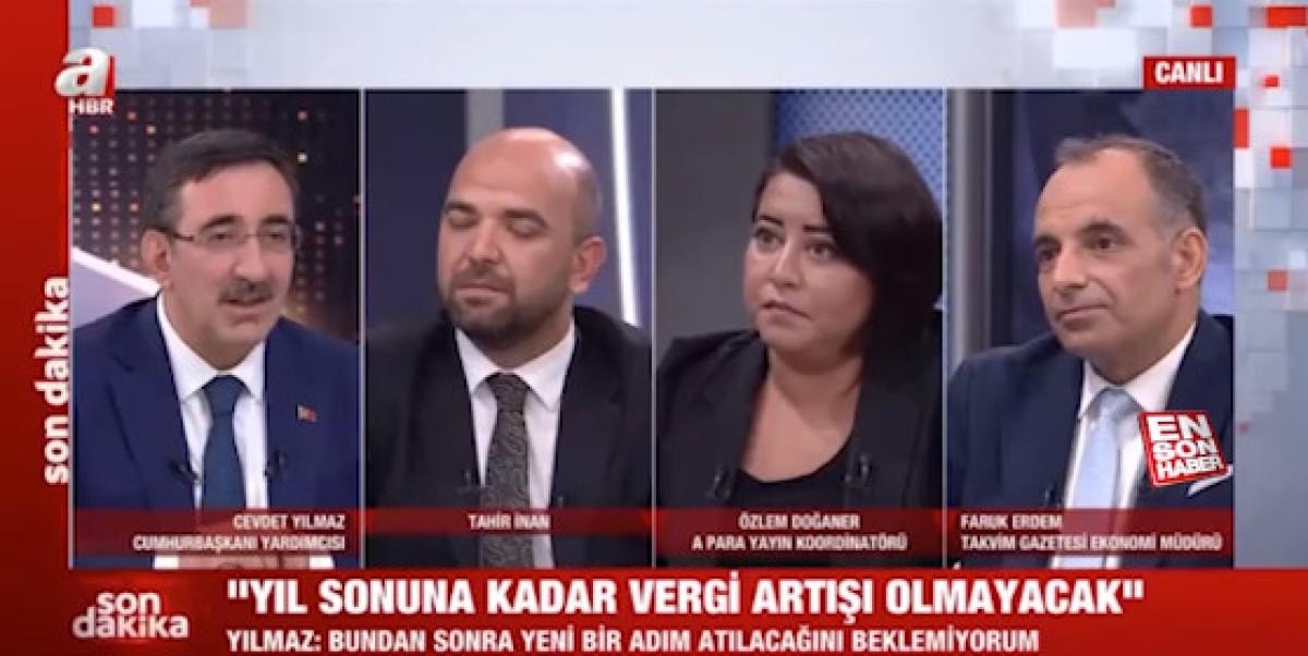 Cumhurbaşkanı Yardımcısı Cevdet Yılmaz, A Haber televizyonunda katıldığı "son dakika" programında gündemi değerlendirerek Tahir İnan, Özlem Doğaner ve Faruk Erdem'in sorularını yanıtladı.