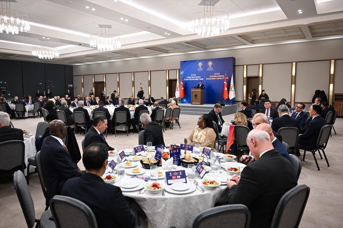 AK Parti'de 8'inci Olağan Büyük Kongresi'ne davet edilen yabancı ülke siyasi parti temsilcileri, büyükelçiler, diplomatlar, yurt dışı STK'ların onuruna yemek verildi.
