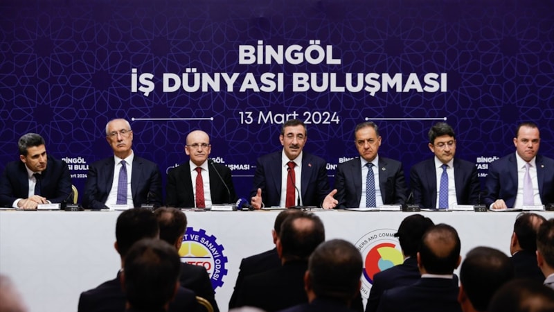Cumhurbaşkanı Yardımcısı Cevdet Yılmaz ve Hazine ve Maliye Bakanı Mehmet Şimşek, Bingöl'de iş dünyası temsilcileriyle bir araya geldi.