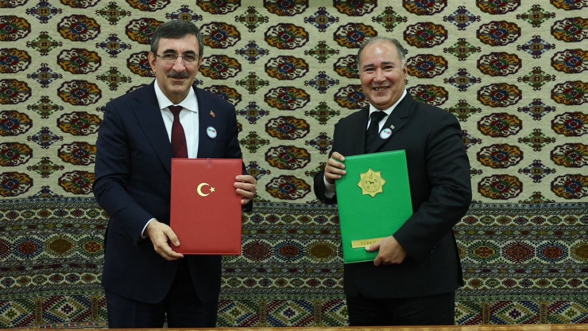 Cumhurbaşkanı Yardımcısı Cevdet Yılmaz, Aşkabat'taki Türkmenistan Bakanlar Kurulu Başkan Yardımcısı Batır Atdayev ile birlikte Türk İhraç Ürünleri Fuarı'nın açılışını gerçekleştirdi.