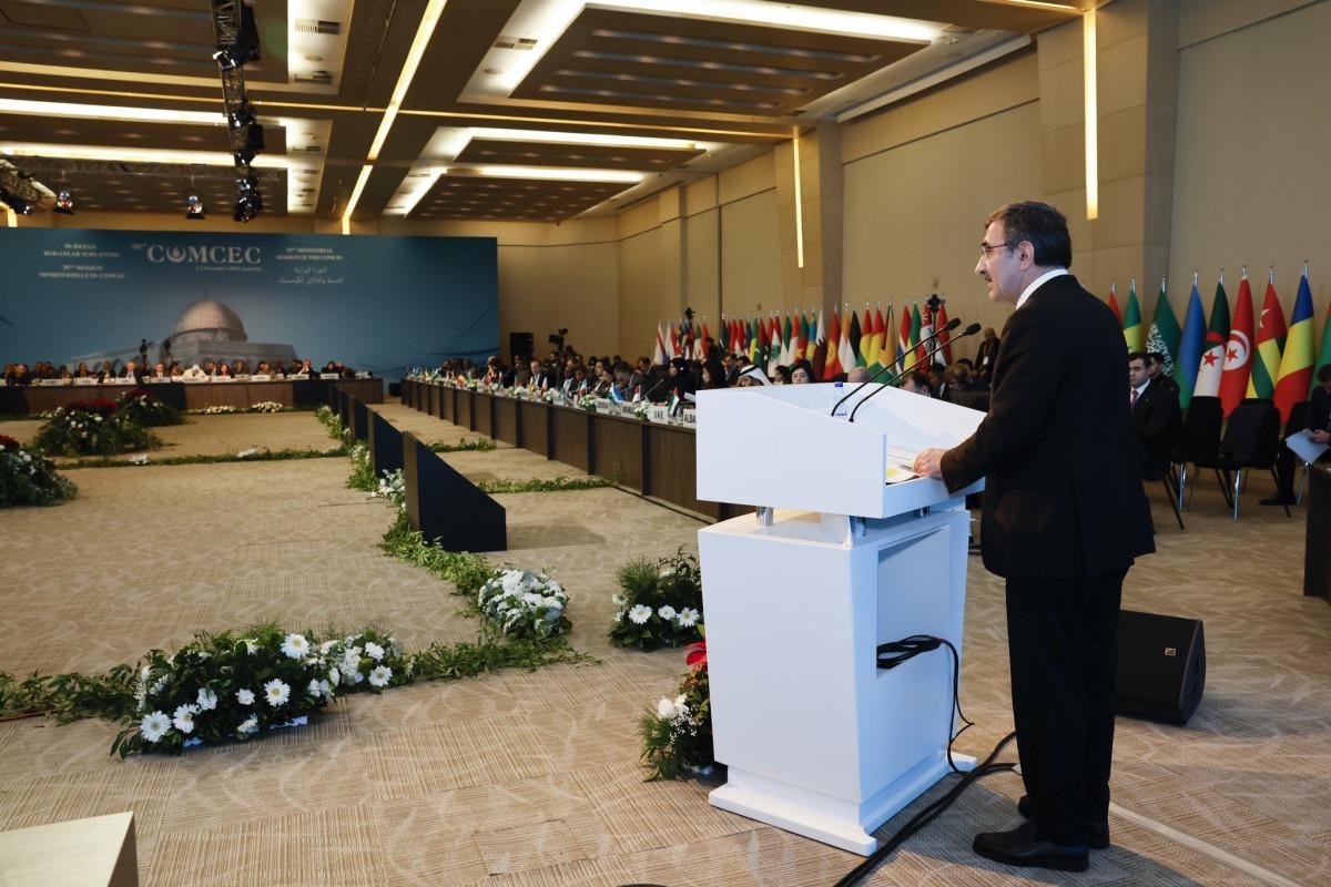 Dünyanın içinden geçtiği sancılı ekonomik süreçlerin yanı sıra İslam dünyasının durumu hepimizin yüreklerini dağlamaktadır. Çatısı altında bu toplantıları yaptığımız İslam İşbirliği Teşkilatı'nın kuruluş gayesinin Kudüs davası olduğu hiçbir zaman unutulmamalıdır. İslam dünyası bugün her zamankinden daha fazla birlik içinde olmak ve mazlum Filistin halkını desteklemek durumundadır. Özellikle 7 Ekim'den bu yana işgal edilmiş Filistin topraklarında yaşananlar artık insanlığın tahammül sınırlarını aşmıştır. Masum sivillerin ölümden kaçmak için son bir umutla sığındıkları hastaneleri, okulları, ibadethaneleri acımasızca bombalamak, kendini savunma hakkıyla açıklanabilir mi? İşgalci bir gücün kendini savunma hakkından bahsetmesi eşyanın tabiatına aykırıdır. Bunu hiçbir şekilde kabul etmemiz mümkün değildir. Açıkça nükleer silah kullanmakla toplumları tehdit edenler uluslararası hukuk önünde hesap vermeyecek mi? İnsanlığa karşı açıkça suç işlenirken elini vicdanına en önce götürmesi gerekenler bizler değil miyiz?