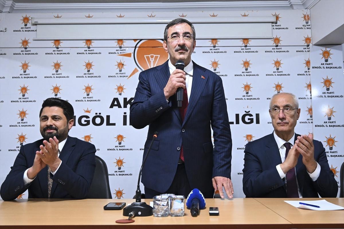 Cumhurbaşkanı Yardımcısı Cevdet Yılmaz, Bingöl'deki temasları kapsamında Ticaret ve Sanayi Odası'nda düzenlenen "Bingöl Turizm Çalıştayı"nda iş insanlarıyla bir araya geldi.