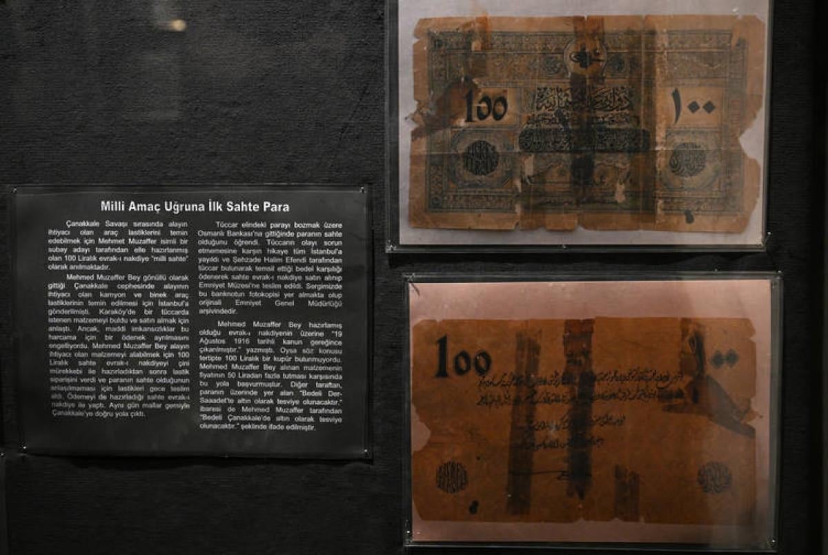 Ayrıca Çanakkale Savaşı sırasında "Muzaffer" isimli zabit tarafından yapılan Türklerin ilk sahte parası da sergileniyor.