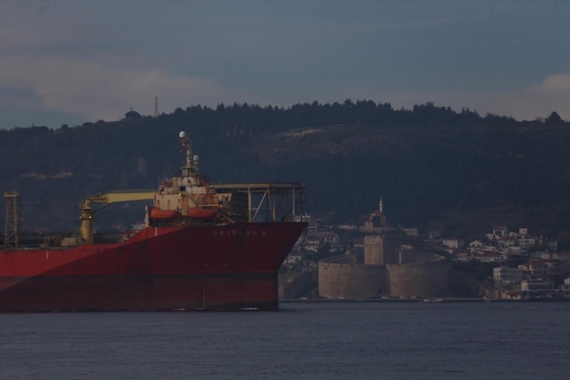 Doğalgaz tankerinin 'Gryphon A' Çanakkale Boğazı'ndan geçişi sırasında Boğaz, transit gemi geçişlerine tek yönlü kapatıldı.