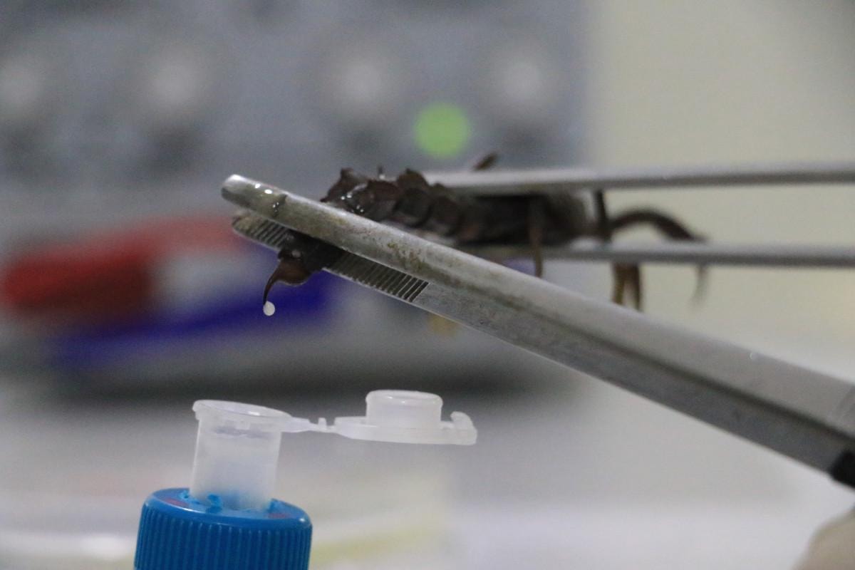 İki kardeşini de tesiste istihdam eden ve aradan geçen süreçte akrep sayısını 3 bine yükselten Fidanten, yetiştirdiği akreplerin zehrini elde etmek için ayda bir sağım yapıyor.