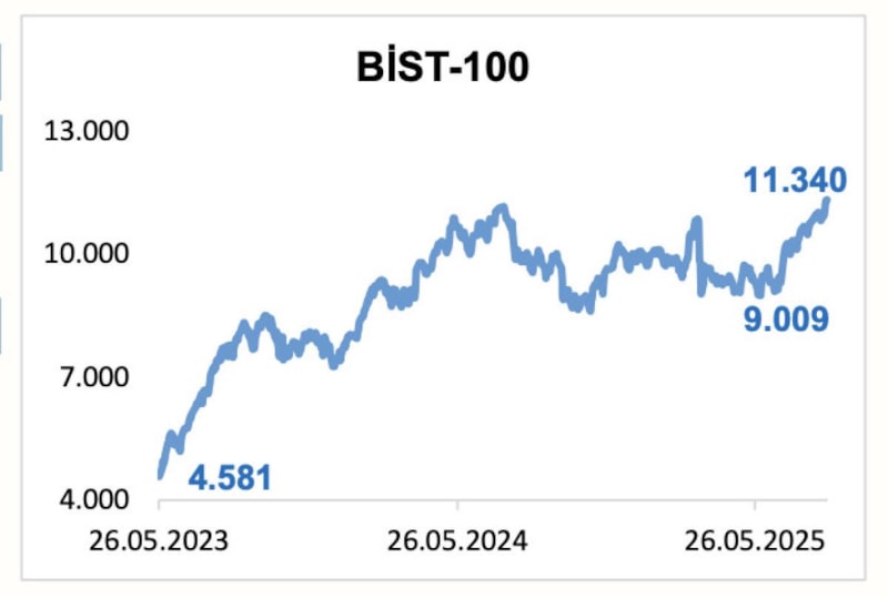 Haziran başında 9,000 seviyelerinde olan BİST-100 endeksi, 22 Ağustos 2025 piyasa kapanışı itibarıyla 11,340 seviyesine ulaştı.