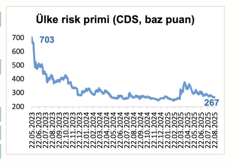 Ülkemizin risk pirimi 703 baz puan seviyesinden, 267 baz puana düştü.