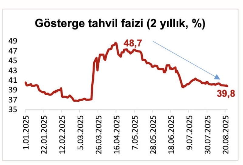 Hazine’nin gösterge faizi (2 yıllık iç borçlanma faizi), tepe değerine göre 900 baz puana yakın düştü.