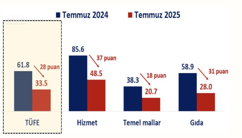 Temmuz ayında hem yıllık enflasyon hem de gıda enflasyonu son 44 ayın en düşük seviyesinde gerçekleşti.
