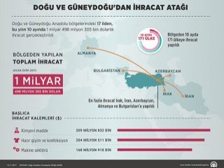 DAİB'in ekim ayı ihracatında 17 il arasında ihracatı en fazla artan iller ise sırasıyla Hakkari, Batman, Bitlis, Bingöl, Erzurum, Iğdır ve Ağrı oldu.