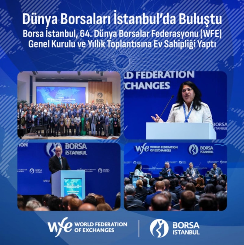 Dünya Borsalar Federasyonu 64. Genel Kurulu ve Yıllık Toplantısı 21-23 Ekim 2025 tarihlerinde Borsa İstanbul’un ev sahipliğinde gerçekleşti. Küresel sermaye piyasalarının en prestijli buluşmalarından biri olarak kabul edilen etkinlik, 50’ye yakın ülkeden 200’ün üzerinde Yönetim Kurulu Başkanı, Genel Müdür ve üst düzey borsa yöneticisini İstanbul’da bir araya getirdi. Bu önemli buluşma ile dünya finans basınının odağı Türkiye sermaye piyasalarına çevrildi.