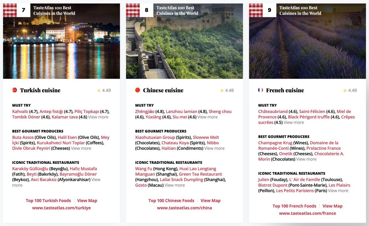 - Listenin diğer üst sıralarında İtalyan, Japon ve Fransız mutfakları dikkat çekiyor.