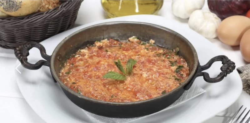 Taste Atlas tarifi, "Öncelikle soğan ve sarımsak zeytinyağında sotelenir, ardından ıspanak ve pul biber eklenir. Daha sonra yumurtalar tavaya kırılır ve beyazları pişene kadar kısık ateşte bırakılır. Bu yemek sıcak olarak, tek başına ya da yanında çıtır ekmek ve yoğurtla servis edilir." cümleleriyle anlattı.