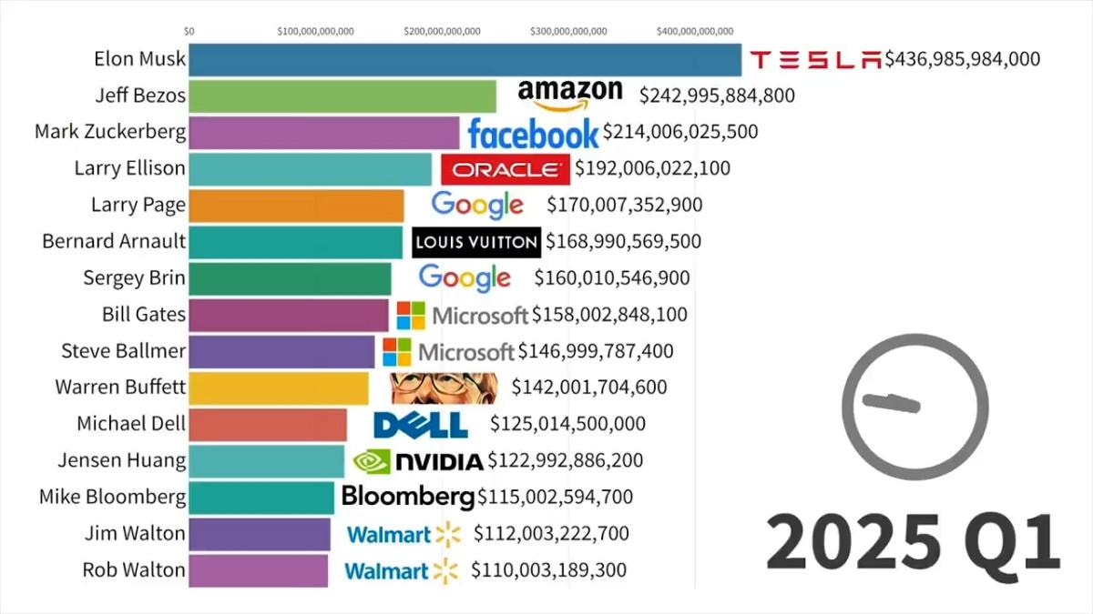 Conflict'in hazırladığı "1984’ten bu yana dünyanın en zengin insanları" grafiğindeki son duruma göre dünyanın en zengin ilk 15'i şöyle sıralanıyor: