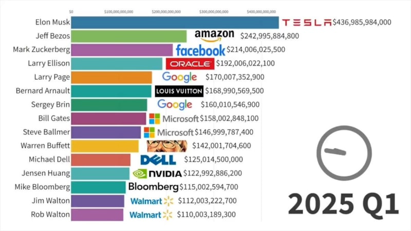 2025'e girerken servet dağılımında ilk 15'e baktığımızda en tepede yine Elon Musk'ı görüyoruz.