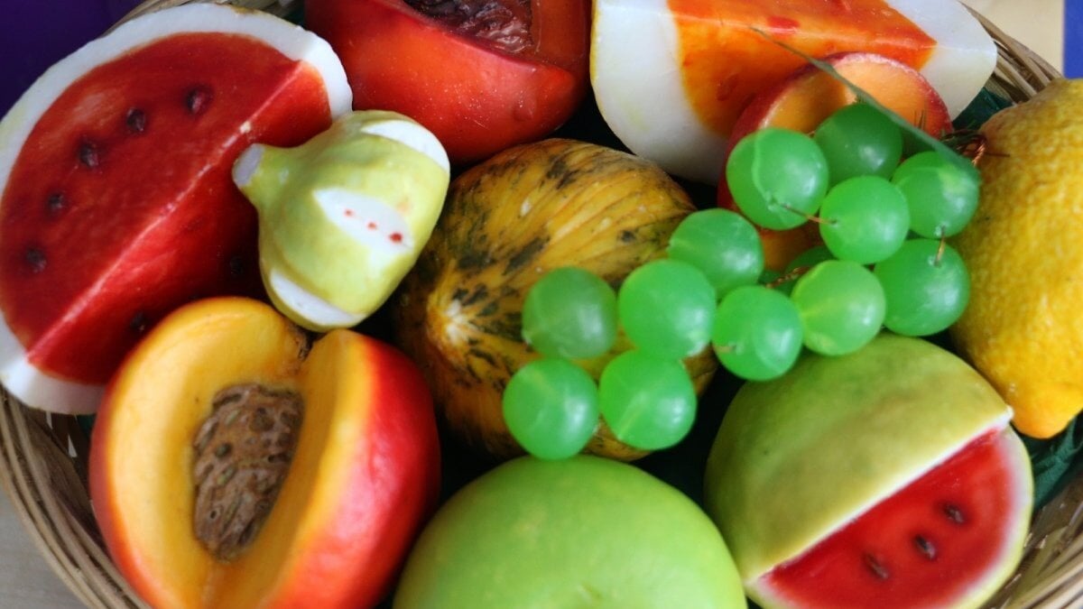 Zorlu bir aşamadan geçen mis meyve sabunu rendeleniyor, hamur haline getiriliyor. Tek tek elle şekil verilip, boyandıktan sonra ise cilalama işlemi yapılıyor.