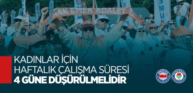 Eğitim-Bir-Sen Kadın Komisyonu Başkanı Sıdıka Aydın, 8 Mart Dünya Kadınlar Günü dolayısıyla yaptığı açıklamada, "Kadın kamu çalışanlarının iş-aile dengesini güçlendirecek yeni düzenlemelere ihtiyaç var. Haftalık çalışma süresi 32 saate, çalışma gününün ise 4’e düşürülmesi gerekiyor." çağrısında bulundu.