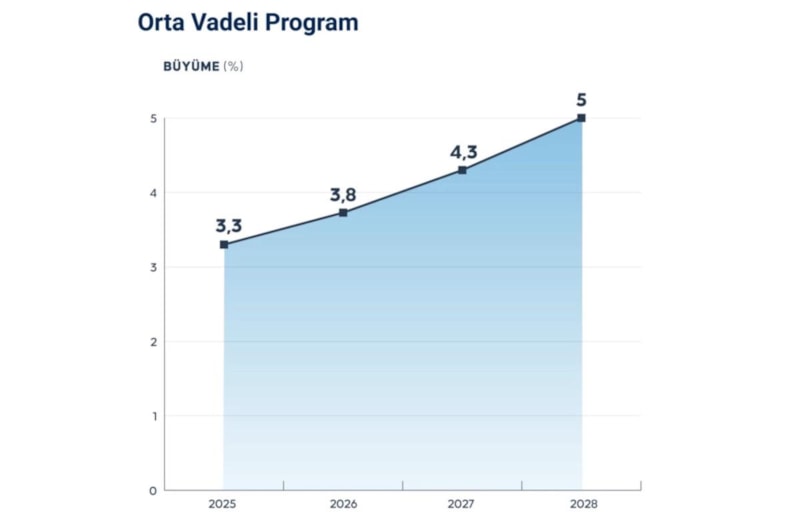 Yüzde 5 olarak belirlenen 2027 büyüme hedefi de yeni OVP’de 4,3 oldu. 2028 büyüme hedefi de yüzde 5 olarak belirlendi.