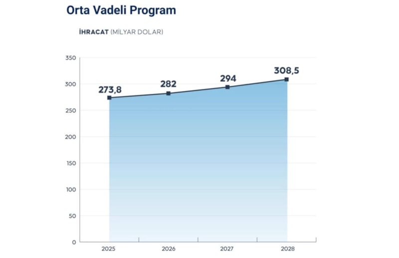 İthalatın ise 2024 sonunda 367 milyar dolar, 2026’da 378 milyar dolar, 2027’de 393 milyar dolar ve programın sonunda 410,5 milyar dolara yükselmesi bekleniyor.