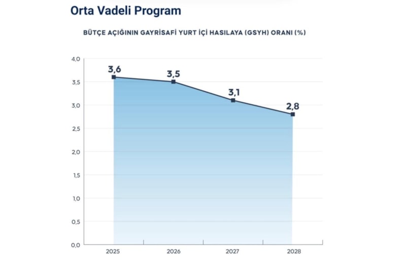 Programda cari denge ile ilgili 2026'da 22,3 milyar dolarlık açık tahmini yapıldı. 2027'de açığın 20,5 milyar dolara, 2028'de ise 18,5 milyar dolara gerilemesi öngörüldü.