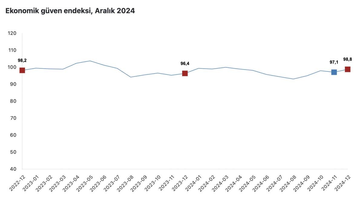 Türkiye İstatistik Kurumu (TÜİK), aralık ayı ekonomik güven endeksini açıkladı.