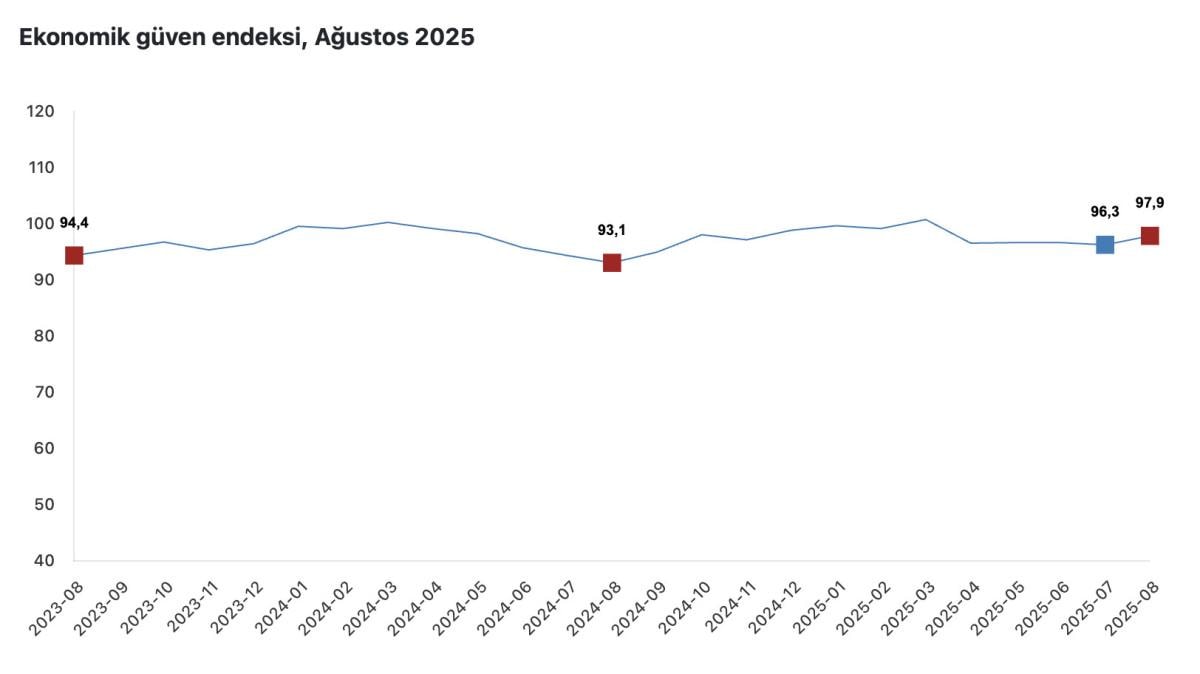 Türkiye İstatistik Kurumu (TÜİK), ağustos ayı ekonomik güven endeksini paylaştı.