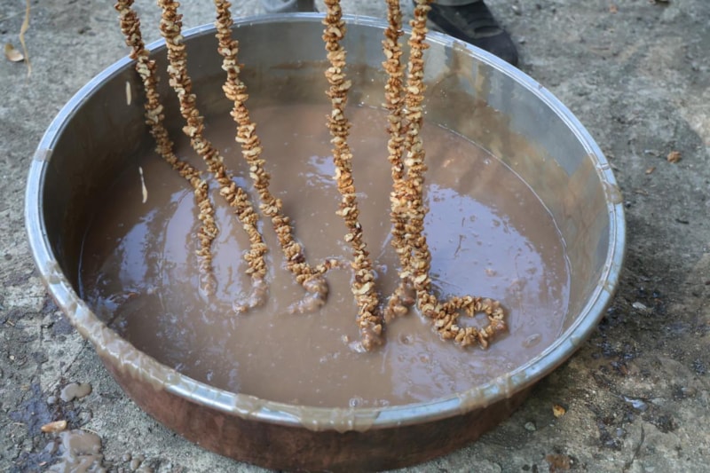 İlk olarak öğlen üzüm sıkmaya başlıyoruz. Onu kaynatıyoruz ve tekrar durultmaya alıyoruz. Sabah durulan şırayı kazana koyuyoruz. Tekrar kaynatıyoruz ve unla buluşturuyoruz. Tekrar bulamaç haline getiriyoruz ve karıştırıyoruz. Ondan sonra batım işlemine başlıyoruz. Bulamaç ile cevizi buluşturuyoruz. Bizimkisi 3 batımdır. Orciklerimiz güzeldir. Başkaları gibi kalın değil, ince yapıyoruz. Sezon eylülün sonuna doğru başlıyor. Kasımın 10’una kadar devam ediyor.