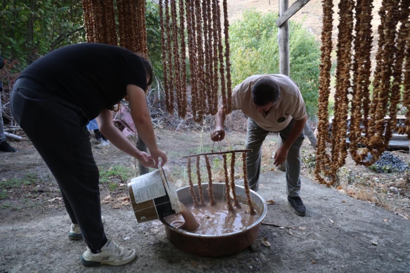 Cevizli sucuk olarak da bilinen coğrafi işaretli "orcik" yapımı için mesai başladı. Köylüler bu ürünü sadece kendileri için değil geçim kaynağı amacıyla da yapılıyor.