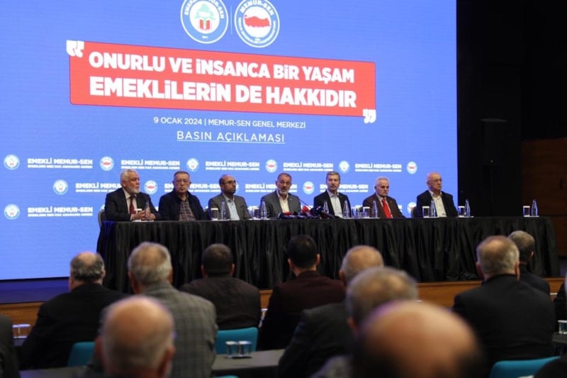 Maaşların netleşmesinin ardından Memur-Sen Konfederasyonu'na bağlı Emekli Memur-Sen üyeleri, Memur-Sen Genel Merkezi'nde "Onurlu ve insanca bir yaşam emeklilerin de hakkıdır" konulu açıklama yaptı.