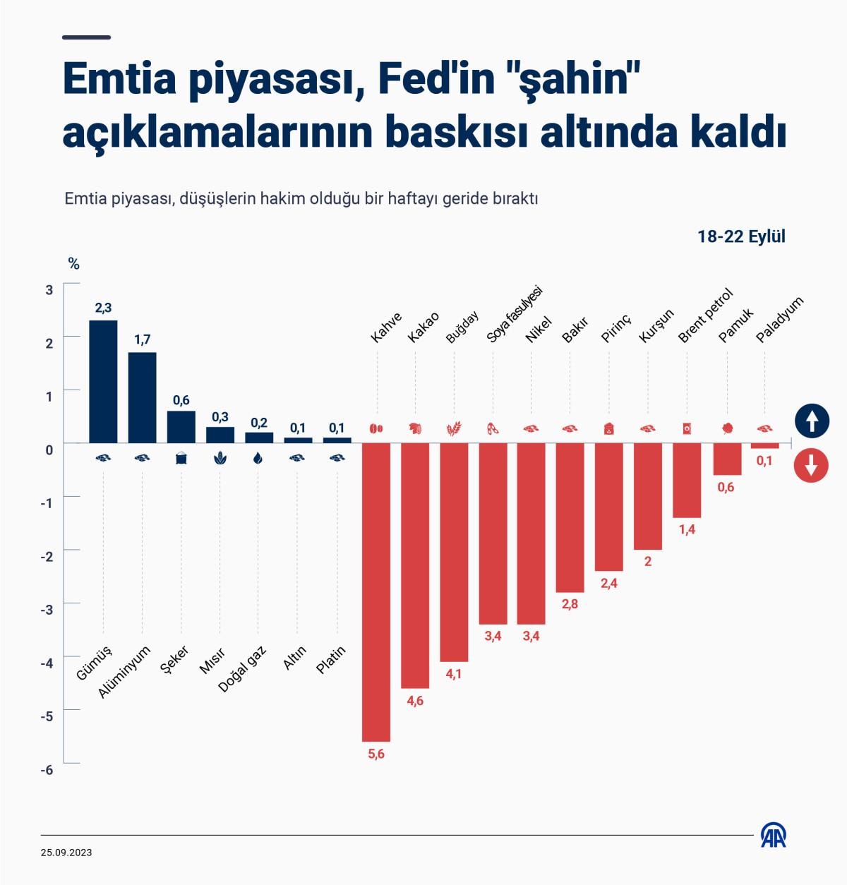 Emtia piyasasında, geçen hafta ABD Merkez Bankası’nın (Fed) şahin açıklamalarıyla satış baskısı görüldü.