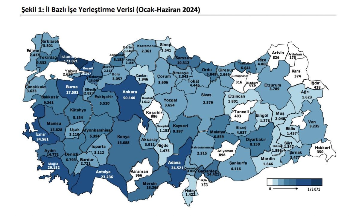 Ocak-Haziran 2024 işe yerleştirme haritası