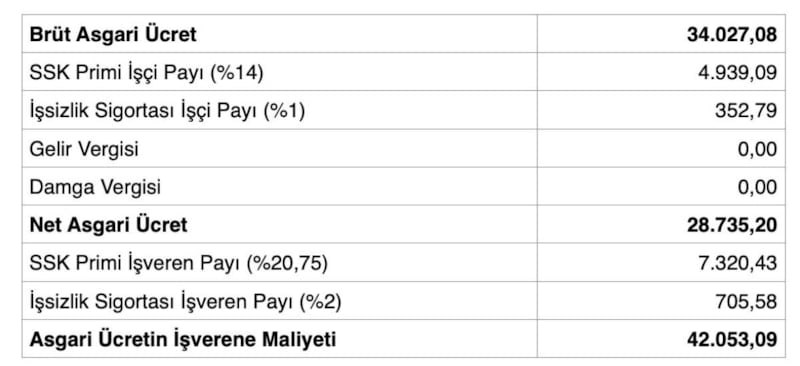Asgari Ücretin İşverene Maliyeti: 42 bin 53,09 TL