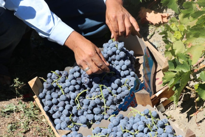 Erzincan'ın Üzümlü ilçesindeki 200 yıllık bağlarda yetişen yörenin tescilli tarım ürünlerinden "Cimin üzümü"nün hasadı sürüyor.