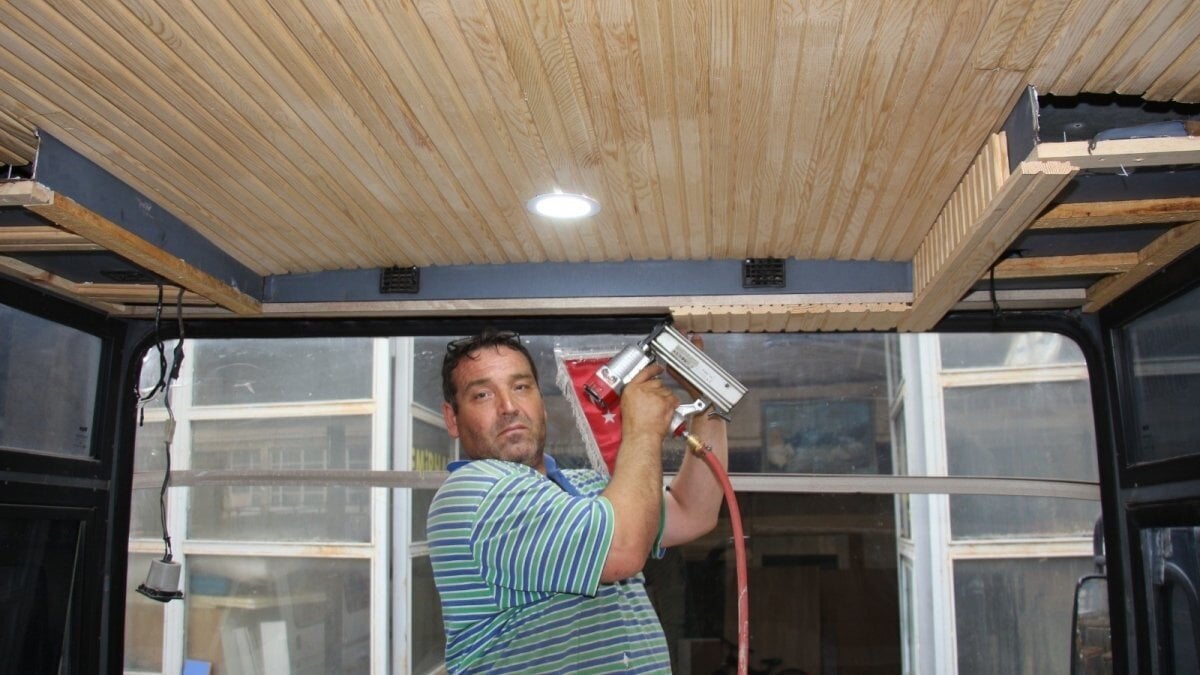 Oltulu mobilya ustası Osman Kaya eski otobüsleri lambiri döşeme ile karavana çevirmeye başladı.