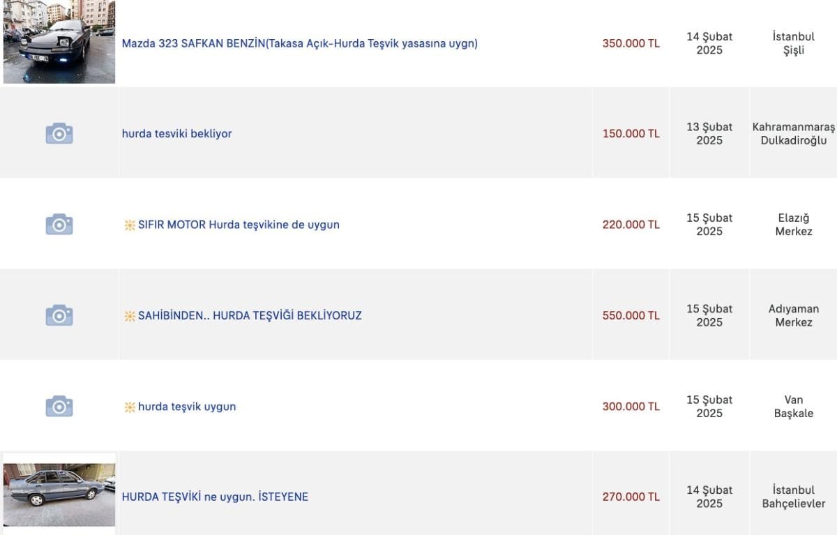 İlgili sitelerde hurda araçlar yüksek fiyata satılıyor ve alacakların bu şartlarda dahi avantajlı olduğuna dair ilanlar yayınlanıyordu.