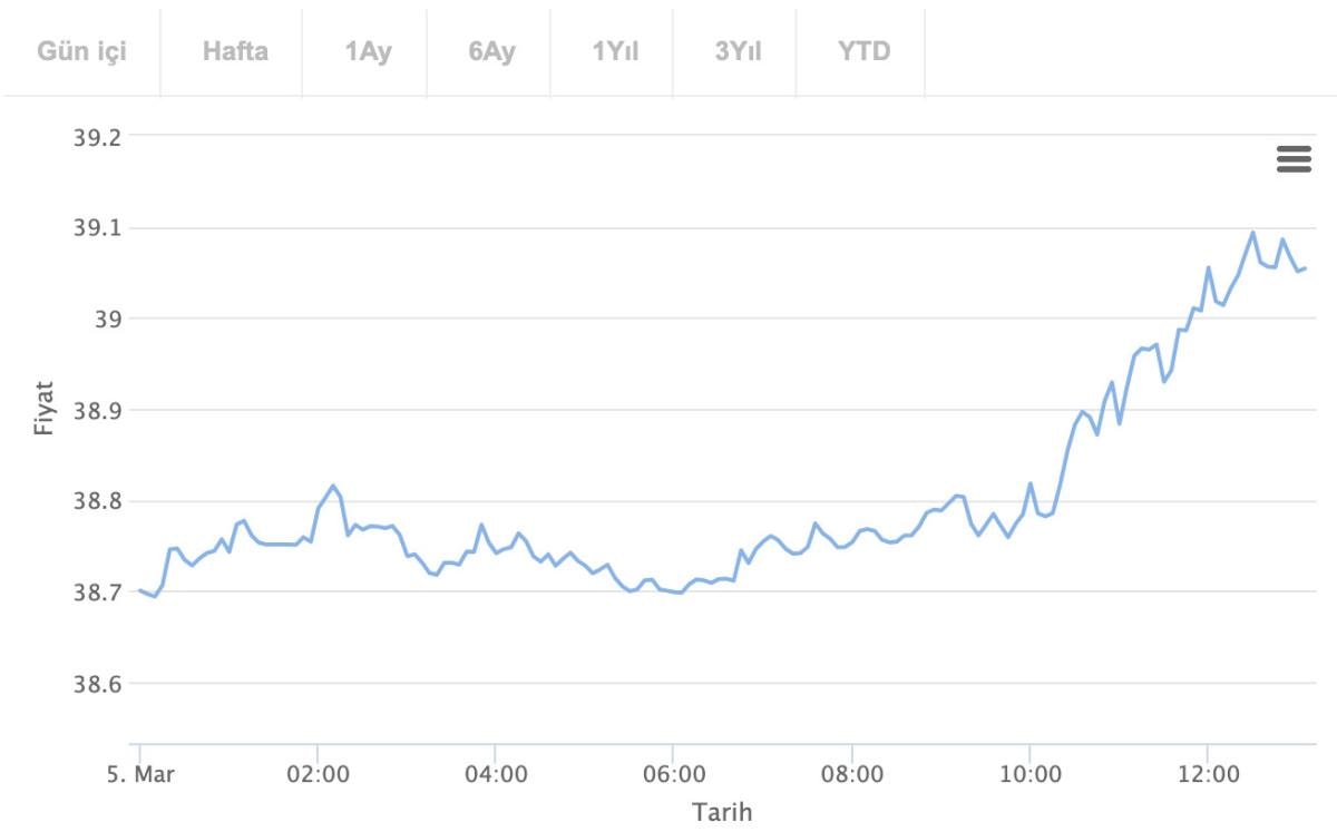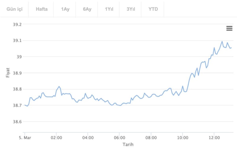 Söz konusu gelişmelerin ardından üst üste ikinci işlem gününde de yükseliş gösteren euro, 39,0155 TL seviyesini test ederek rekor kırdı.