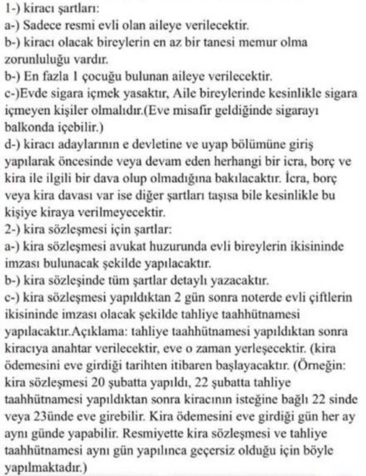 - Denizli'de bir ev sahibi, 35 bin liraya kiralayacağı dairesi için 26 maddelik detaylı bir kriter listesi yayınladı.