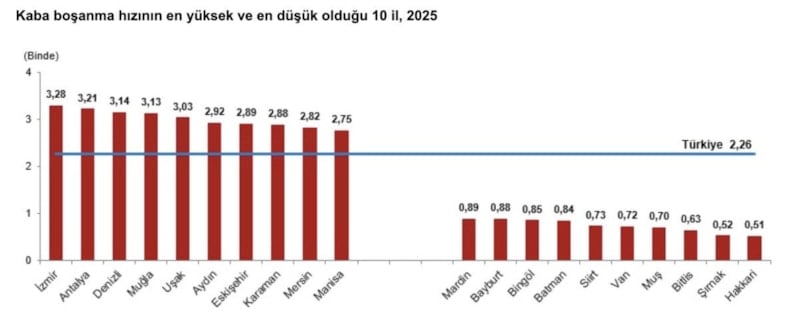 EN YÜKSEK KABA BOŞANMA HIZI İZMİR OLDU