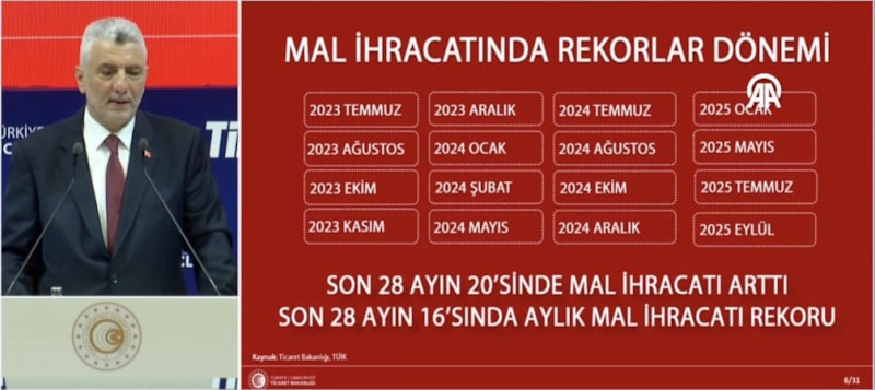 "Eylül ayı mal ihracatı rekoru kırdık. 2025 yılının 9 ayın 7'sinde mal ihracatında aylık başarı elde edildi.